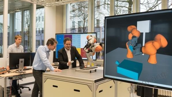 西門子——西門子中央研究院近日在慕尼黑演示了雙臂機器人的一部分,借助人工智能的高度自動化,該機器人無需編程即可自主分工協(xié)作,用于產(chǎn)品制造。西門子中央研究院Kai Wurm博士表示,“我們只需告訴機器人,把某個部件安裝到導軌上,它就會執(zhí)行這個操作。”作為一個簡化的例子,這項任務描述了“單件定制化生產(chǎn)”的內涵。其中涉及加工或組裝含有不同部件的多樣化產(chǎn)品。機器人從關聯(lián)的軟件模型中獲取制造產(chǎn)品的相關信息。傳統(tǒng)的機器人無法理解這種CAD/CAM(計算機輔助設計和制造)模型,但新的機器人原型可以做到。從某種意義上說,這就好像機器人能夠理解不同的語言,從而不必對其運動和工藝進行編程。