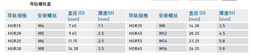 為防止切削粉末或異物經(jīng)由螺栓孔侵入滑塊內(nèi)部影響精度,客戶必須在安裝導軌時將螺栓蓋打入螺栓孔內(nèi),每支導軌出廠時皆配有螺栓蓋。
