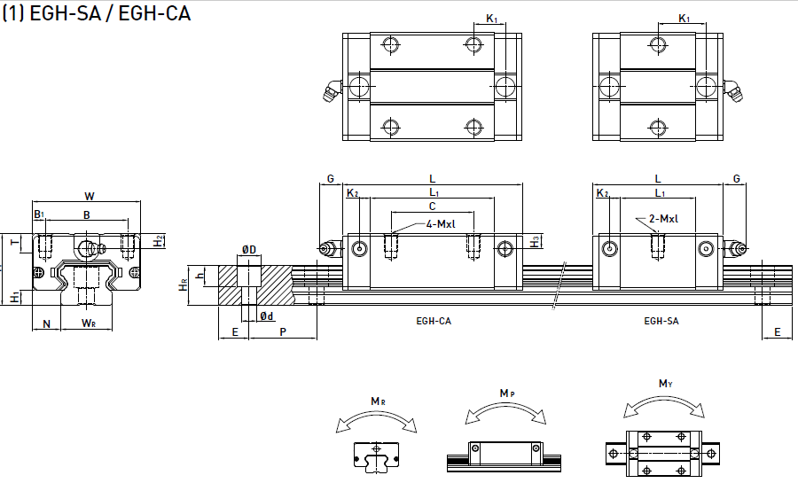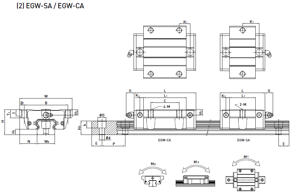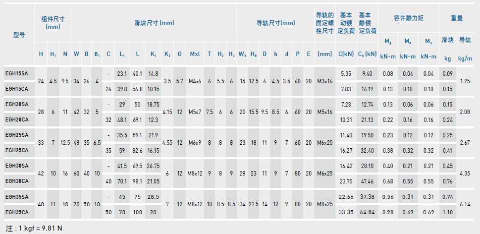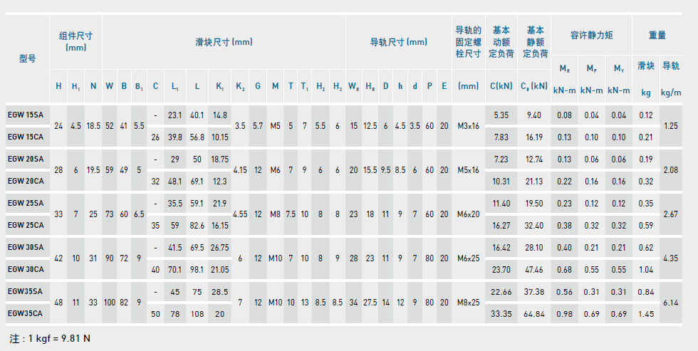 低組裝型滾珠直線導(dǎo)軌EG系列尺寸表