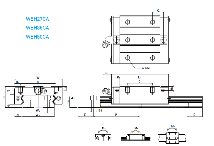 直線導軌寬幅型直線導軌WE系列尺寸表