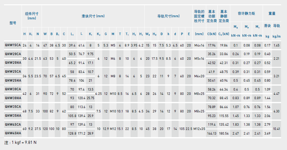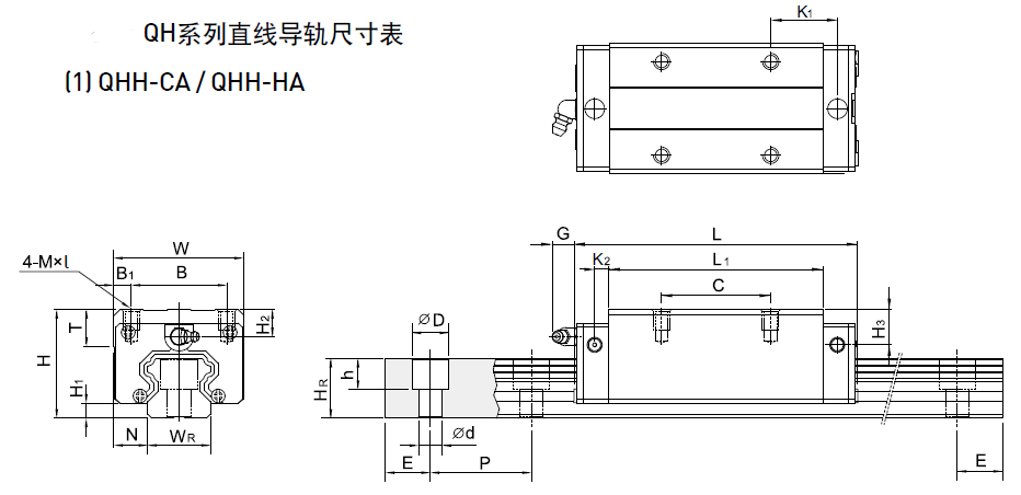QH系列直線導(dǎo)軌尺寸表
