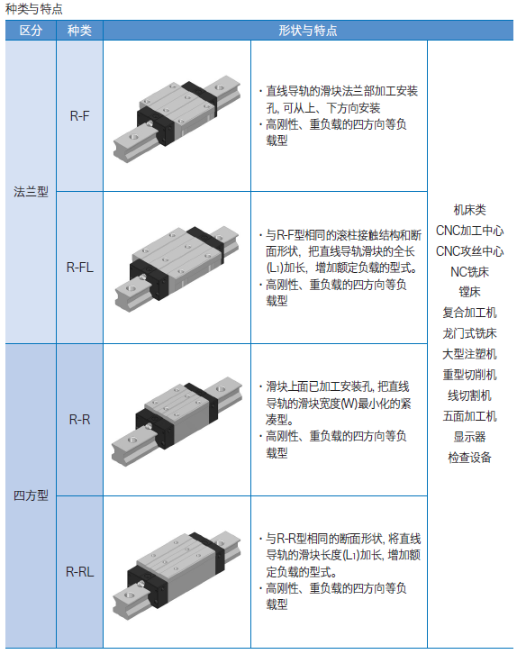 f. 與相同尺寸的鋼球型直線導(dǎo)軌相比, 具有更大的基本額定負(fù)載, 有利于設(shè)備的小型化, 使用相同尺寸也能獲得更長(zhǎng)的使用壽命。