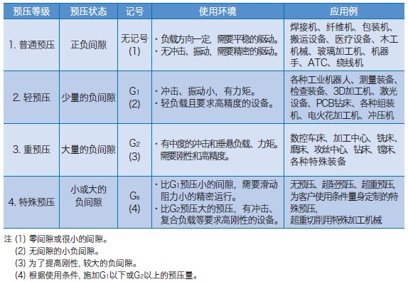 直線導(dǎo)軌的施加預(yù)壓方式有利用滾動(dòng)體(鋼球或滾柱)消除間隙提高機(jī)械性精度, 或利用增加滾動(dòng)體的直徑預(yù)先施于預(yù)壓, 提高直線導(dǎo)軌的剛性, 減少外部負(fù)載的變形量。